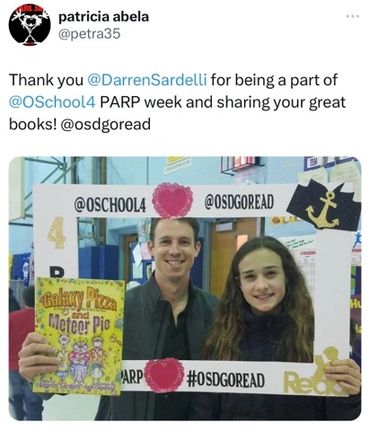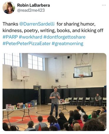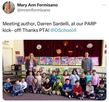 "It was a pleasure to have a VIRTUAL VISIT from Darren Sardelli. He was able to connect with the children and parents through the virtual medium. The children both laughed and learned. Even though we were not able to meet in person, Darren made us feel he was in the room with us."