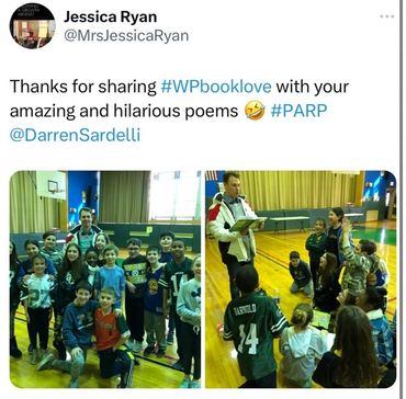 "When it comes to writing skills, fast-paced poetry, and plain ol' humor, Darren Sardelli has it all. As a fellow writer, I can attest to the fact that Darren's got the chops. He's the buzz in the biz. A must-have on any school's list of entertainers and educators. The first time I heard Darren read one of his poems aloud, I was immediately enthralled. His storytelling and rhymes are spot on, not to mention hilarious!"